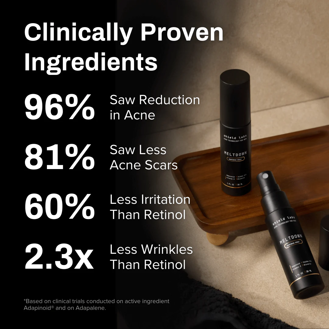 Clear acne, blackheads, and post-acne marks with this revolutionary retinoid spray that works on both face and body without the irritation of traditional treatments. The touch-free mist tackles hard-to-reach areas like your back and shoulders, delivering visible results in just weeks with daily use.